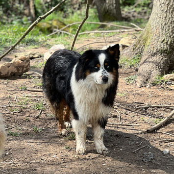 Reggie is a stunning black tri male that we recently added to our program. His lines come from some outstanding dogs on the west coast including multiple AKC grand champions. He is as small as they come for standard aussies.